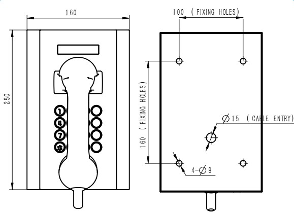 설치가 매우 쉽습니다. 케이블 입구는 인위적인 손상을 방지하기 위해 전화기 뒷면에 있으며, 키패드는 날씨와 파손 방지 기능이 있습니다.